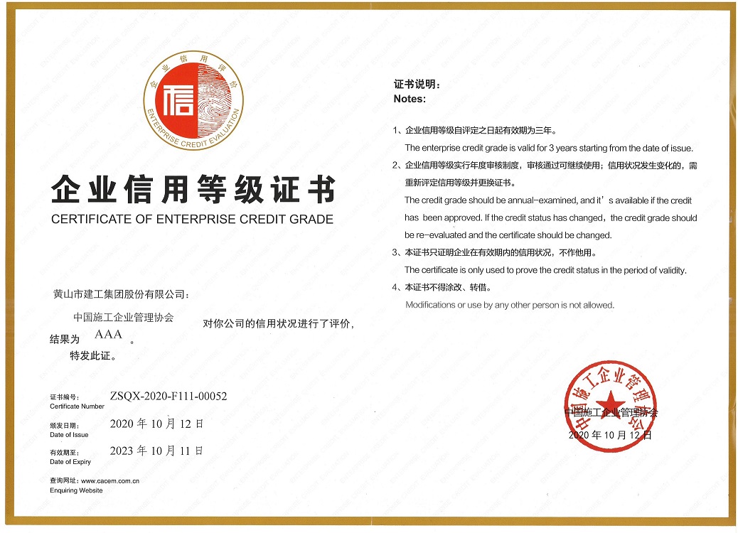 榮譽(yù)的獲得,是對黃山建工集團近年來(lái)信用體系建設工作的充分肯定,公司將進(jìn)一步規范管理,增強誠信意識,守信踐諾,為工程建設行業(yè)的持續健康發(fā)展做出新貢獻。