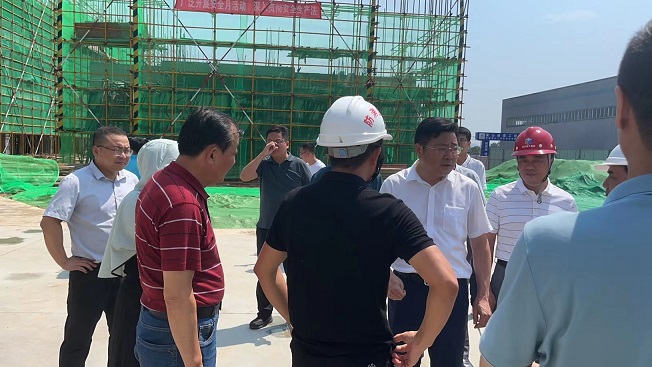 近日,黃山市天氣持續高溫酷熱,驕陽(yáng)似火,黃山博盛消防裝備有限公司新廠(chǎng)區1-2#車(chē)間及研發(fā)中心工人仍堅守在施工一線(xiàn),頂烈日,搶工期。7月26日上午,屯溪區委書(shū)記吳旭光、區委副書(shū)記、區長(cháng)楊林,區人大常委會(huì )主任朱學(xué)軍,區政協(xié)主席袁震宇,區政協(xié)副主席杜祖紅等一行深入工地現場(chǎng),開(kāi)展“送清涼進(jìn)工地”活動(dòng),看望慰問(wèn)項目部一線(xiàn)職工。