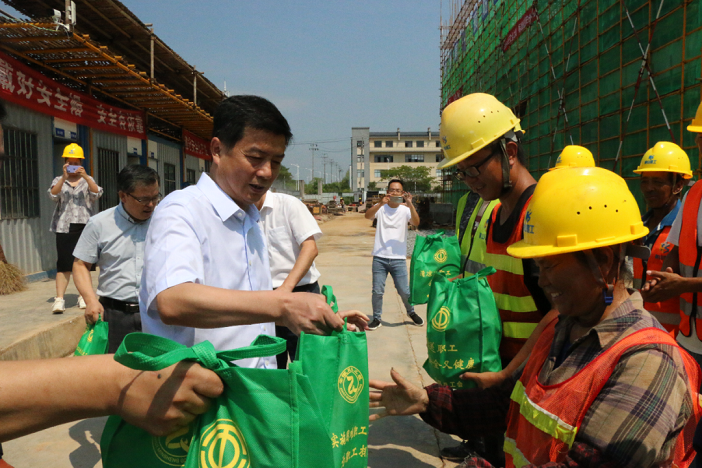 在項目施工現場(chǎng),區委書(shū)記吳旭光代表區委區政府向在高溫下作出辛勤工作的工人們表示深深的敬意,將防暑降溫物品送到他們手中,并叮囑他們要勞逸結合,注意身體健康。并要求項目部要科學(xué)安排作息時(shí)間,制定高溫應急預案,加強施工現場(chǎng)安全管理,確保高溫時(shí)期工地安全生產(chǎn)形勢穩定。