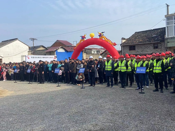黃山建工集團董事長(cháng)項端陽(yáng)、總經(jīng)理葉金發(fā)、副總經(jīng)理吳學(xué)武及項目負責人和部分施工人員參加了寧國市河瀝溪文化街區工程項目的開(kāi)工盛典。