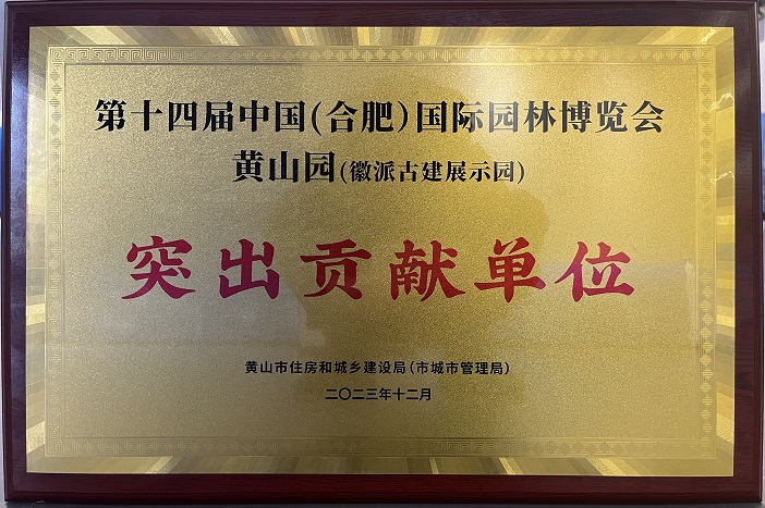 12月18日下午,中國(黃山)第三屆徽派古建產(chǎn)業(yè)發(fā)展大會(huì )古建產(chǎn)業(yè)高質(zhì)量發(fā)展推進(jìn)會(huì )·新安茶會(huì )舉行。推進(jìn)會(huì )上頒發(fā)了第十四屆中國(合肥)國際園林博覽會(huì )黃山園(徽派古建展示園)“突出貢獻單位”獎項,作為黃山園項目參建單位之一的黃山建工集團再獲殊榮。