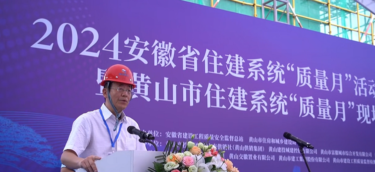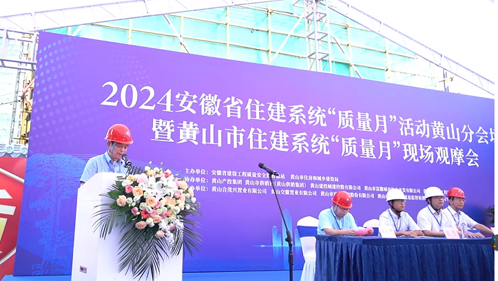 省質(zhì)量安全監督總站站長(cháng)黃欣鄭重宣布:2024安徽省住建系統“質(zhì)量月”活動(dòng)黃山分會(huì )場(chǎng)暨黃山市住建系統“質(zhì)量月”現場(chǎng)觀(guān)摩會(huì )活動(dòng)啟幕。