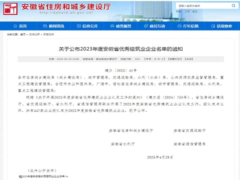 近日,黃山建工集團接連獲得兩項省級權威認可:安徽省住房和城鄉建設廳公布了《2023年度安徽省優(yōu)秀建筑業(yè)企業(yè)名單》,黃山建工集團有限公司憑借卓越的綜合實(shí)力、突出的行業(yè)貢獻和良好的社會(huì )口碑再次成功入選。同時(shí)又榮獲安徽省市政工程協(xié)會(huì )認定的"2024年度優(yōu)秀市政企業(yè)"稱(chēng)號。這一系列榮譽(yù)的取得,充分展現了企業(yè)在建筑工程和市政工程領(lǐng)域的綜合實(shí)力和行業(yè)領(lǐng)先地位。